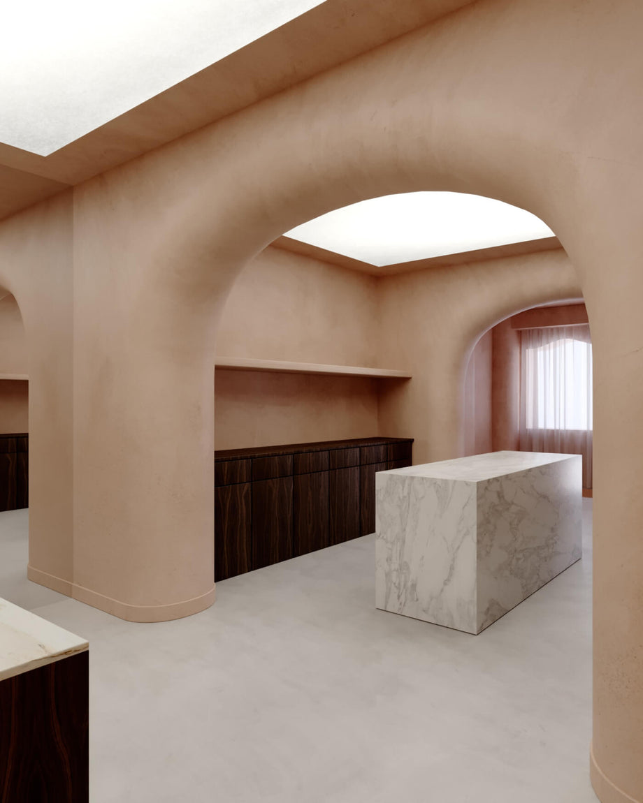 Conceived as a "contemporary palace" by multidisciplinary designer Benjamin Guedj, the interior reveals its organic forms crafted from mineral materials. They recall the infinite world of precious stones while echoing the poetry of Tityaravy's refined creations. The first Tityaravy boutique is an invitation to travel, through the designer's multiculturalism.